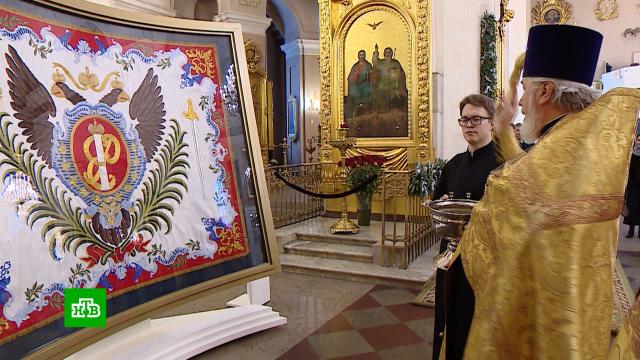 Сегодня в Спасо-Преображенский собор Петербурга вернулось воссозданное знамя одного из старейших воинских подразделений России прославленного Преображенского полка, который основал Пётр I. Еще 17 реконструкций и копий знамен преображенцев пополнили экспозицию Эрмитажа. Этот знаковый проект реализован при поддержке «Газпрома». Над восстановлением реликвий трудились специалисты эрмитажной лаборатории научной реставрации тканей. Мастера применяли материалы, максимально близкие к историческим образцам, использовали старинные техники росписи и вышивки.