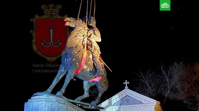 В ночь на четверг в Одессе демонтировали памятник русскому полководцу Александру Суворову. Кадры того, как конную скульптуру снимают с постамента с помощью крана, распространились в соцсетях и украинских СМИ. Объявлено, что памятник будет отправлен на хранение в Одесский национальный художественный музей.