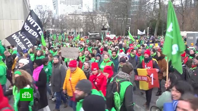 Массовыми протестами охвачена и соседняя Бельгия. В Брюсселе собралось больше 10 тысяч медсестер и сиделок. Они требуют улучшения условий труда и повышения зарплаты, жалуясь, что