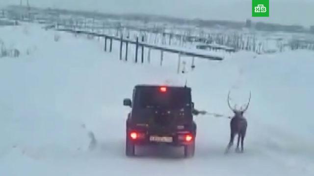 В Норильске женщина выгуливала оленя, сидя в салоне своего автомобиля Mercedes-Benz G-Klasse (Gelandewagen), сообщает телеканал «Енисей».