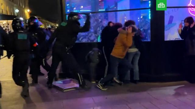 В соцсетях распространились кадры, на которых видно, как полиция, разгоняя людей с улиц, применяет дубинки против всех подряд, включая представителей прессы.