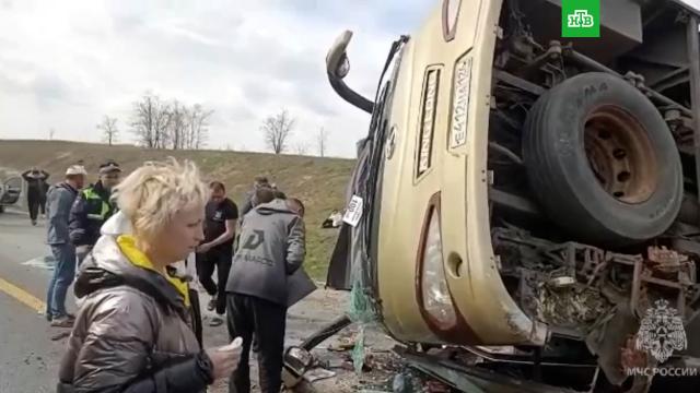 Растет число пострадавших в ДТП в Ростовской области. На трассе «Дон» опрокинулся пассажирский автобус, 15 человек получили травмы.