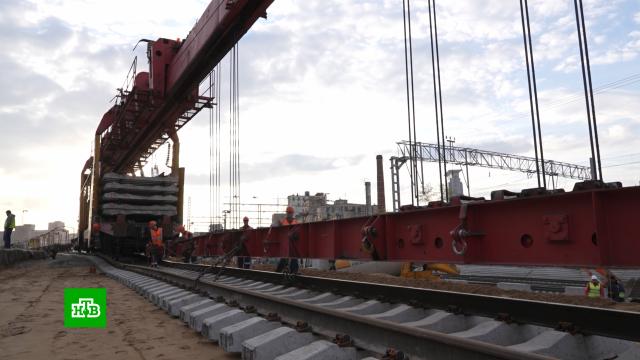 Рядом с Казанским вокзалом завершают строительство тоннеля протяженностью 800 метров. Он готов на 80 процентов. Сейчас рабочие укладывают новые пути на специальные маты, которые снижают шум от движения поездов. А на четырнадцати станциях будущего