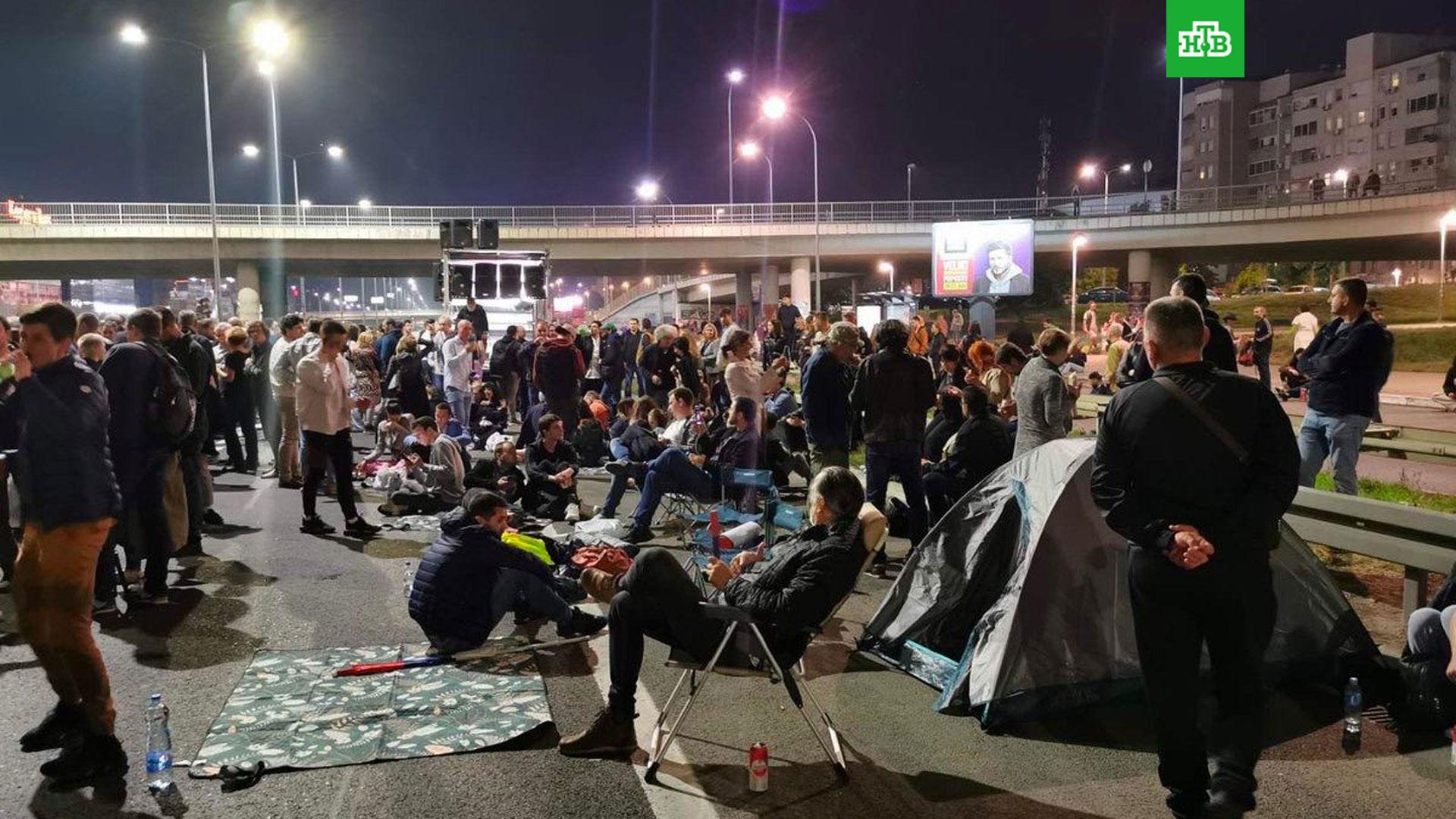 Участники массовой акции протеста оппозиции в столице Сербии в ночь на субботу установили палатки и блокировали движение на международной трассе из Будапешта в Салоники.