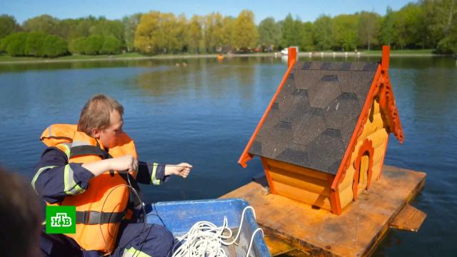К летнему сезону на столичных водоемах установили около 150 плавучих домиков для уток.