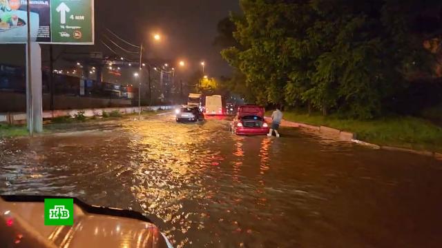 По данным синоптиков, за несколько часов выпало столько осадков, сколько обычно бывает за полмесяца. Завтра и послезавтра ожидают новую порцию дождей. Объявлено штормовое предупреждение.