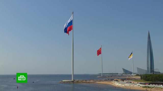 Сегодня на территории Большой Лахты в присутствии президента России Владимира Путина были подняты государственные флаги Российской империи, СССР и Российской Федерации. Глава государства находился на яхте «Охта» и наблюдал за церемонией с борта.