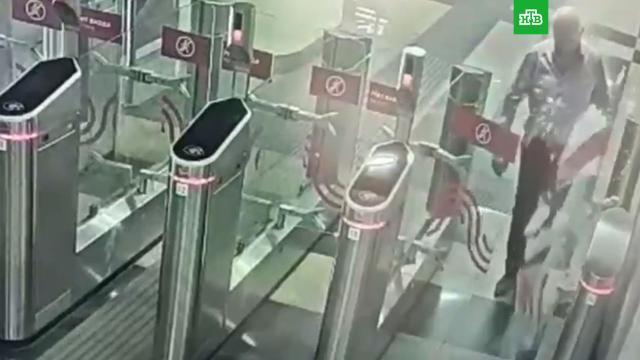 Вандал разбил створку турникета в столичном метро. Инцидент попал на камеры видеонаблюдения.