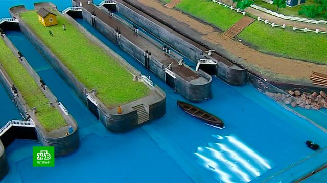 За работой шлиссельбургских шлюзов следят Миних и Пётр I. Это центральная часть макета. Во время работы над моделью ребятам пришлось воссоздать утраченные технологии. Чтобы разгадать инженерные секреты прошлого, зимой опускали под лед камеру. В итоге обнаружили заслонки пропускных каналов. Этой информации не было даже на исторических чертежах.