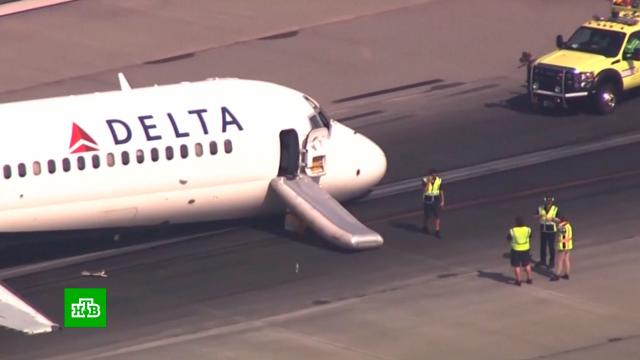 Пассажирский самолет совершил аварийную посадку в США без переднего шасси.