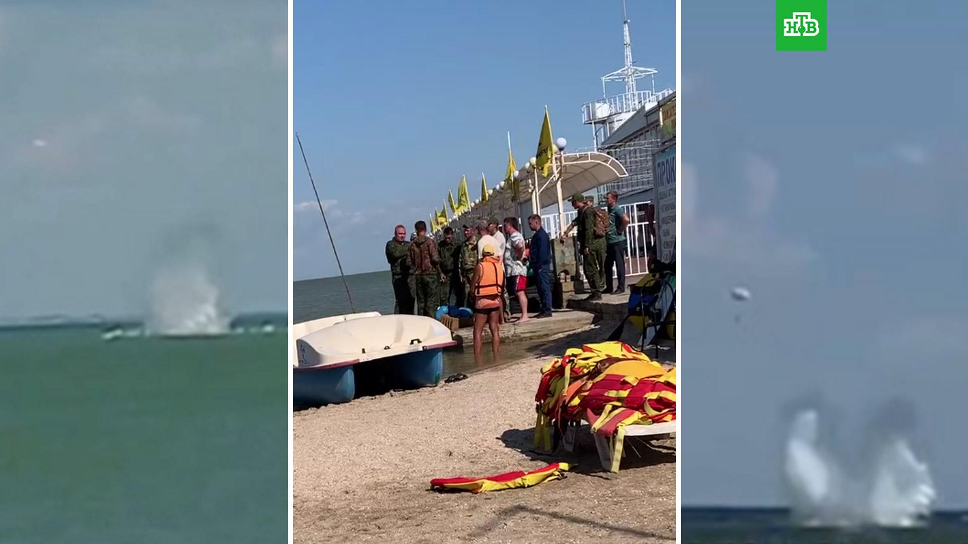 На кадрах, снятых очевидцами, видно, как срабатывает катапульта, а дальше штурмовик уходит в крутое пике и падает в воду. Пилот успевает катапультироваться в последний момент, мужчина упал в воду и