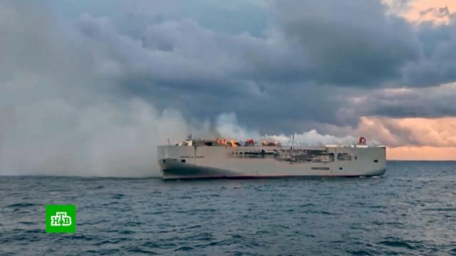 У берегов Нидерландов спасатели тушат грузовой паром, на котором перевозили почти три тысячи автомобилей. По данным СМИ, это только что сошедшие с конвейера Mercedes. Их должны были доставить из Германии в Египет.