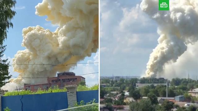 В подмосковном Воскресенске крупный пожар. По предварительным данным, горит цех по производству аккумуляторов.