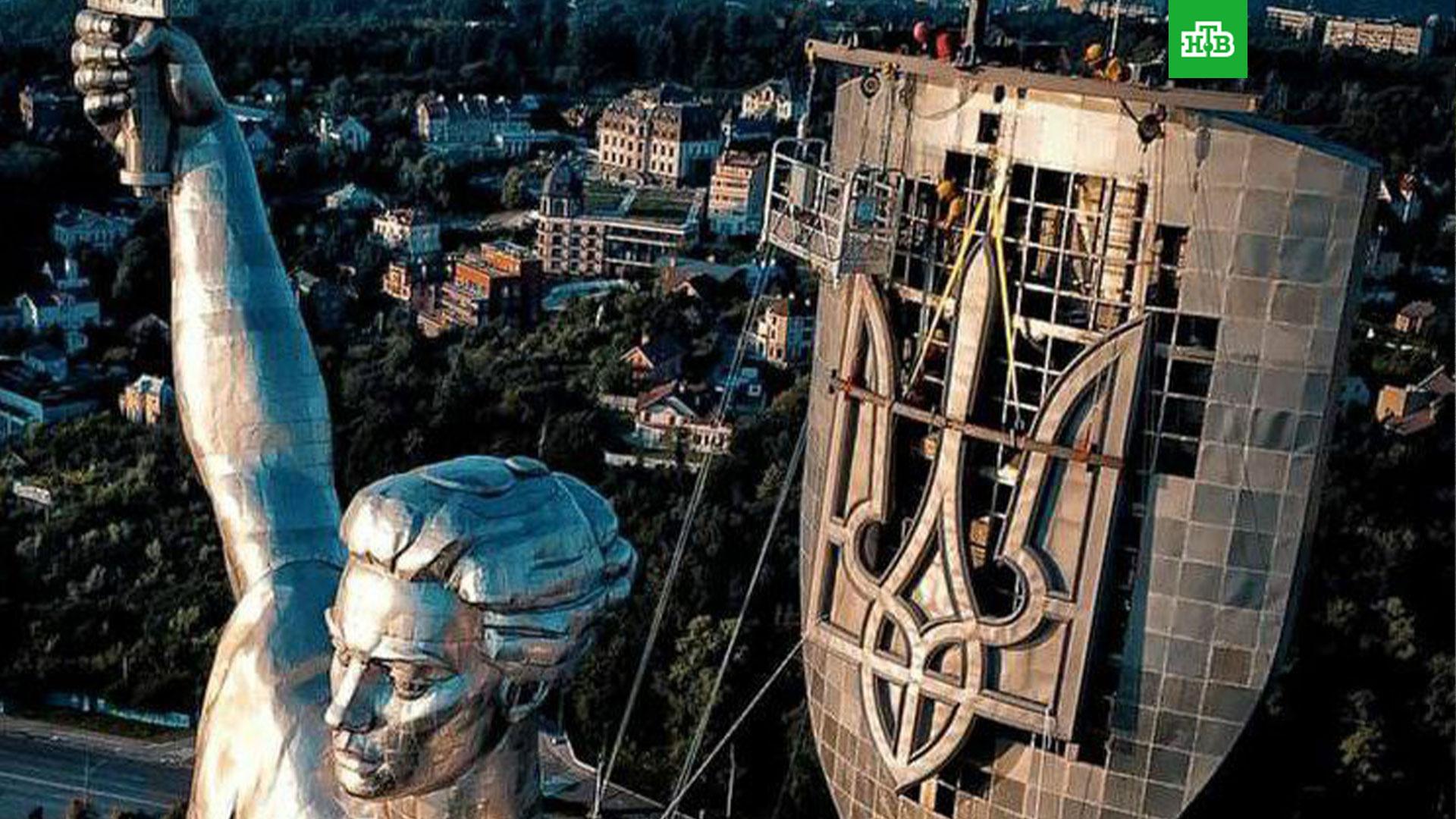 Рабочие установили трезубец на монумент «Родина-мать» в Киеве, монтажные работы продолжаются, сообщает украинское издание «Страна».