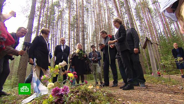 Урочище Сандармох в Карелии посетили руководители генконсульств Польши, Швеции, Финляндии и ФРГ. Вместе с членами ликвидированного общества «Мемориал» (признано инагентом) они провакационно растягивали украинские флаги и в очередной раз попытались устроить пляски на костях погибших, рассказывая о так называемых зверствах НКВД. Правда, на вопросы о расстрелянных финнами здесь же советских военнопленных стыдливо молчали.