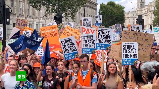 В Лондоне началась масштабная акция протеста медицинских работников. На улицы британской столицы вышли тысячи молодых врачей. Они требуют повышения зарплат и призывают спасать всю систему здравоохранения страны, у многих в руках плакаты: «14 фунтов в час это несправедливо».