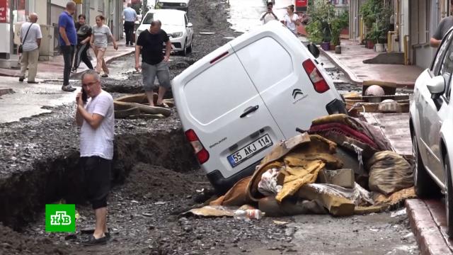 Коммунальщики ничего не могут сделать, потому что ливневки не рассчитаны на такое количество осадков. Сейчас городские службы пытаются ликвидировать большой провал грунта на одной из улиц, куда упало много припаркованных машин. Сильные дожди идут в Конье. Готовятся к ливням в Анкаре, Стамбуле и 19 провинциях страны. Жителей горных районов предупредили об опасности схода селей.