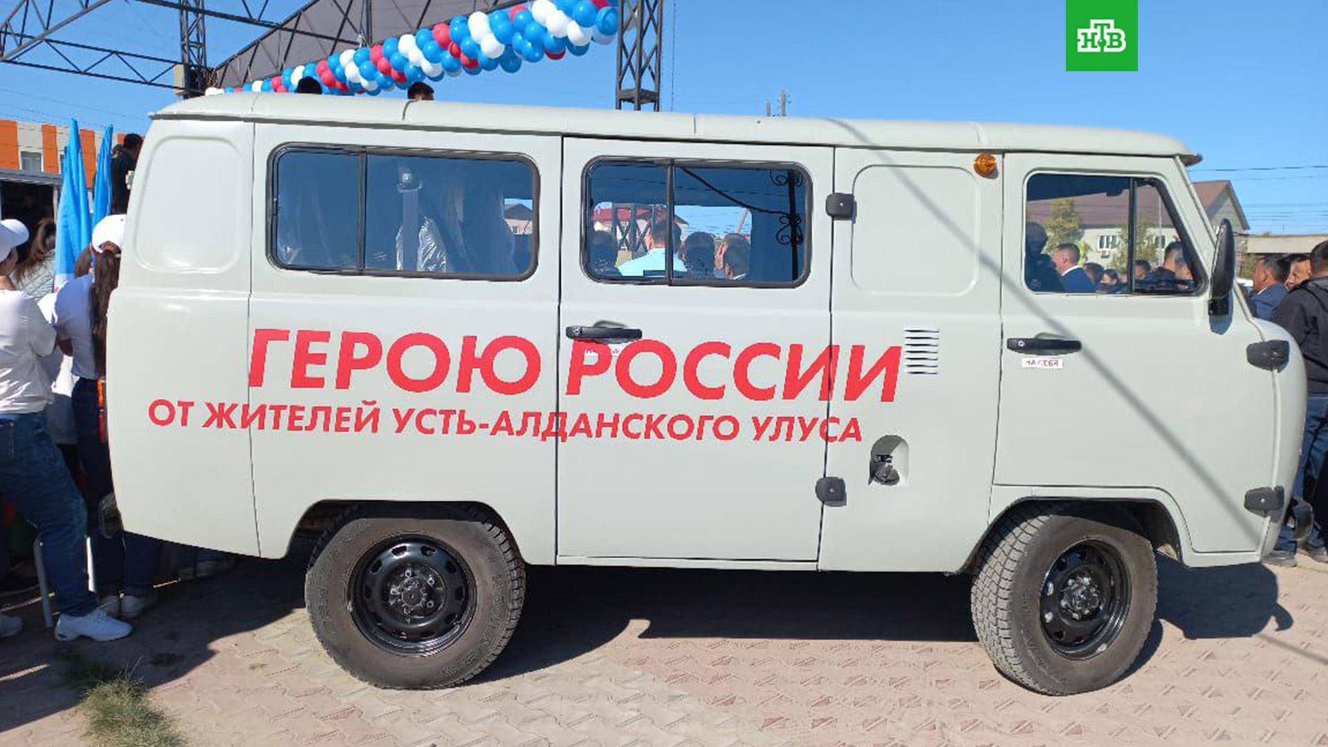В Усть-Алданском районе Якутии воздали почести герою России, члену экипажа танка «Алёша» Алексею Неустроеву. Земляки подарили военному земельный участок, табун лошадей и вручили ключи от автомобиля УАЗ.