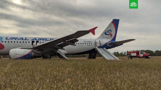 В СМИ и соцсетях появились первые кадры с места экстренной посадки пассажирского лайнера Airbus A320 в поле в Новосибирской области. На первых фотографиях с места видно, что фюзеляж самолета «Уральских авиалиний» не разрушен, следов пожара нет. Также видны надувные трапы, с помощью которых приземлившийся авиалайнер покинули пассажиры и экипаж.