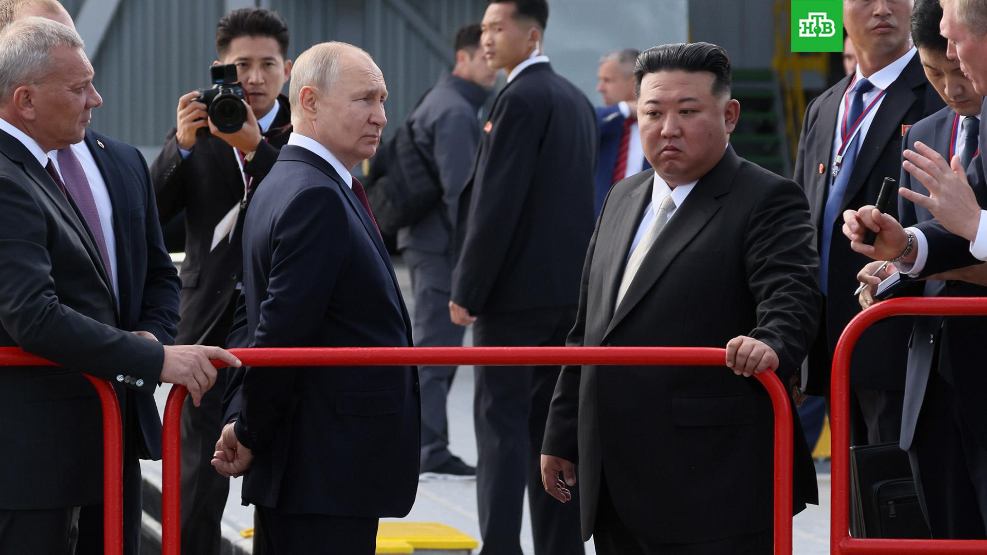 Владимир Путин и лидер КНДР Ким Чен Ын во время осмотра космодрома Восточный сделали незапланированную остановку, во время которой президент РФ представил северокорейскому гостю автомобили Aurus из своего кортежа.