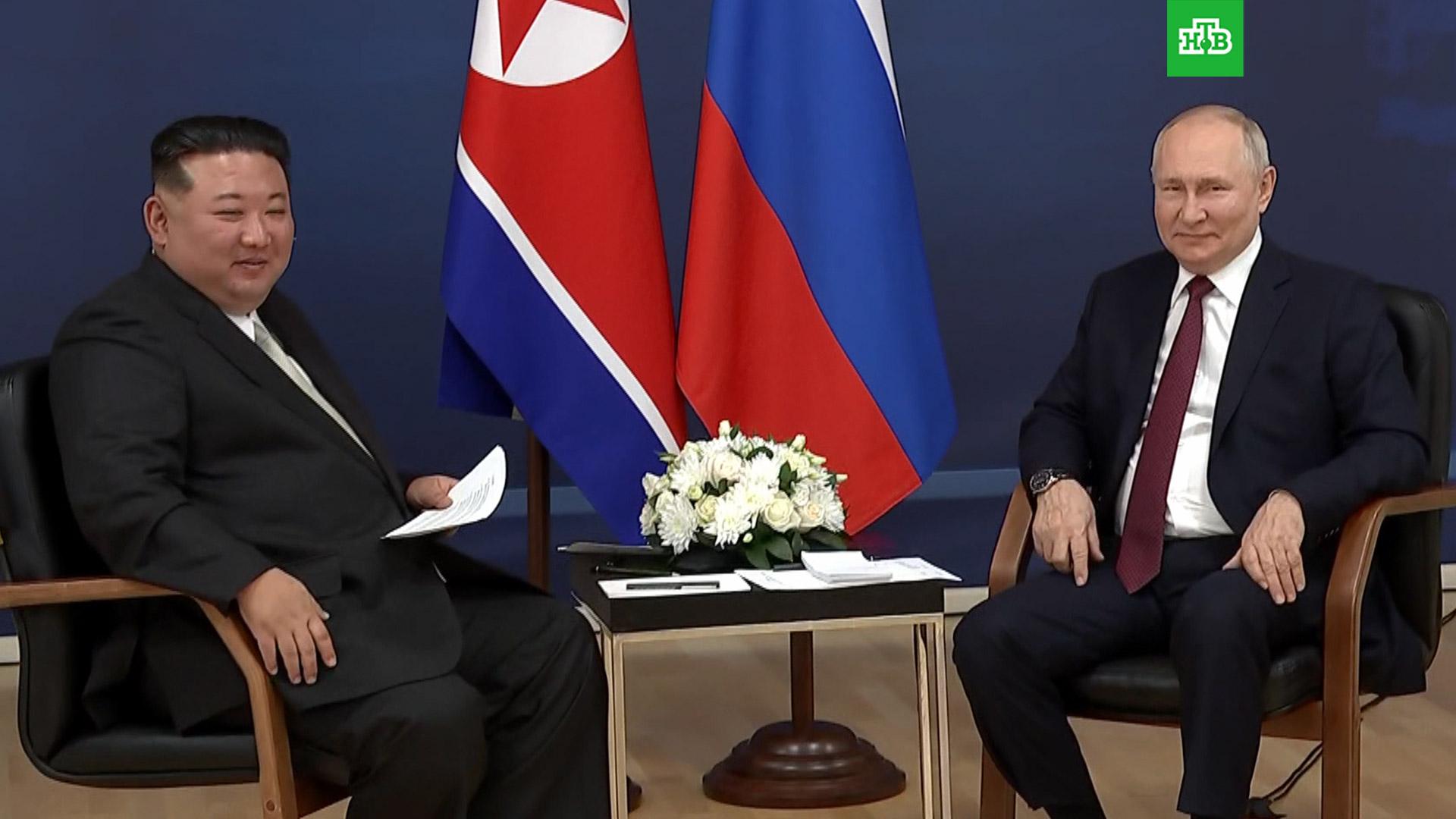 Владимир Путин заявил, что с Ким Чен Ыном состоялся откровенный обмен мнениями по ситуации в регионе и двусторонним отношениям. «Начало хорошее, разговор был продуктивен. Состоялся очень откровенный обмен мнениями по ситуации в регионе, по двусторонним отношениям», — сказал президент России. Он отметил при этом, что Москве и Пекину «большой ущерб нанес ковид, когда КНДР была фактически закрыта от внешнего мира».