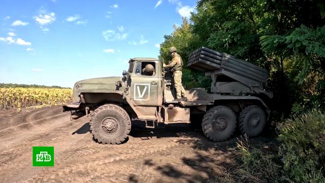 В зоне спецоперации российские артиллеристы наносят сокрушительные удары по позициям киевских силовиков. На Краснолиманском направлении целью атаки стал опорный пункт противника. Точные залпы из реактивных установок «Град» не оставили от вражеского укрепления камня на камне. Активно действует артиллерия и под Донецком.