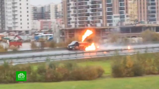 По предварительной информации, именно ДТП стало причиной возгорания «Газели», которая перевозила газовые баллоны в сторону поселка Бугры.
