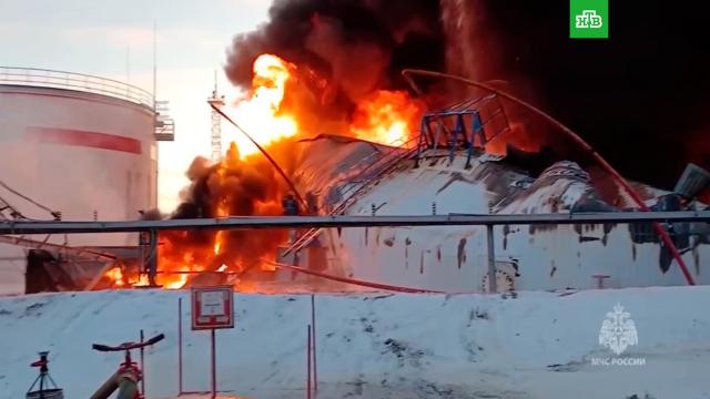 МЧС России опубликовало кадры тушения пожара на нефтерезервуарах в Коми.