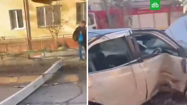В Омске бетонный столб рухнул на коляску с ребенком после того, как в него въехал автомобилист.