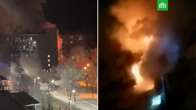 А в соцсетях появились первые кадры с места происшествия. На них видно, что огнем охвачены квартиры на нескольких этажах, пламя выбивается с балконов, весь дом заволокло дымом. Также слышно, как спасатели убеждают перепуганных жильцов не прыгать из окон, а дождаться, пока им смогут помочь спуститься.