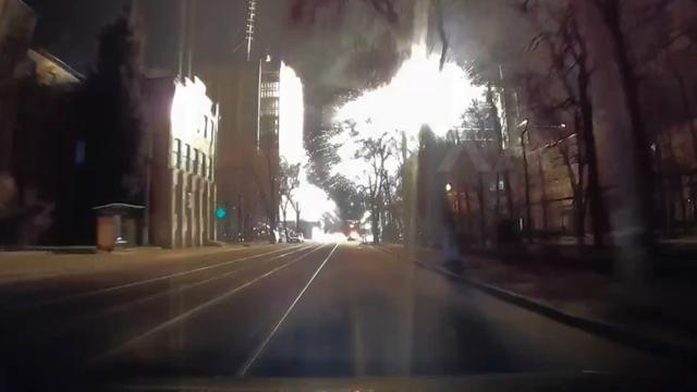 Камера автомобильного видеорегистратора сняла момент российского удара по комплексу «Харьков Палас», где располагались высокопоставленные представители украинской разведки и иностранные наемники.