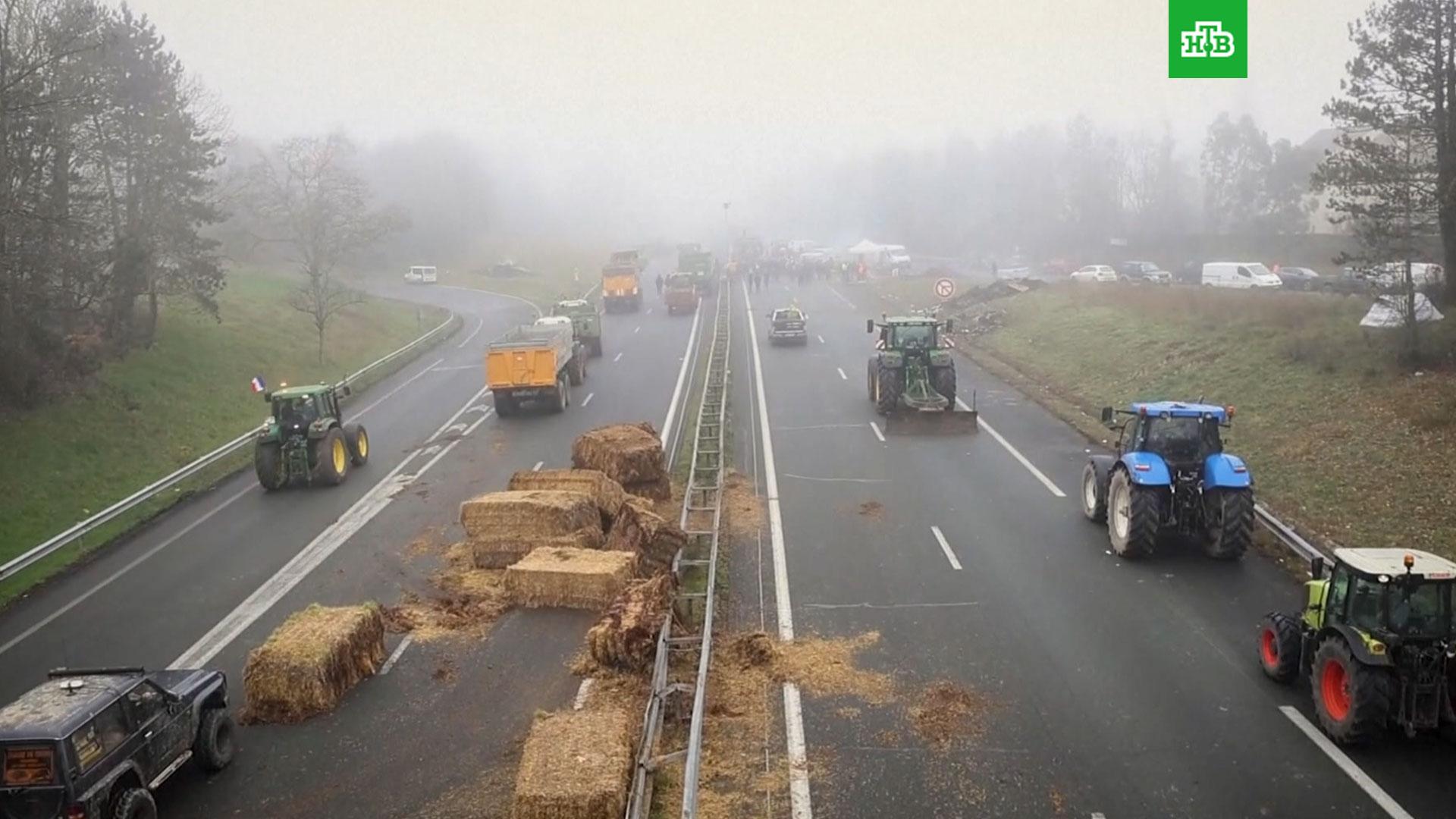 Французские фермеры уже неделю устраивают акции протеста и перекрывают основные транспортные магистрали, создавая баррикады из стогов сена и навозных куч. Аграрии недовольны ростом издержек и цен на топливо, а также ростом поставок сельхозпродукции
