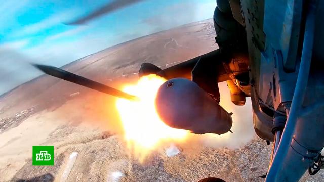 Вертолетчики армейской авиации атаковали цели неуправляемыми авиационными ракетами по координатам авианаводчика. В ходе выполнения боевой задачи были ликвидированы пункт управления, бронетехника и личный состав противника.