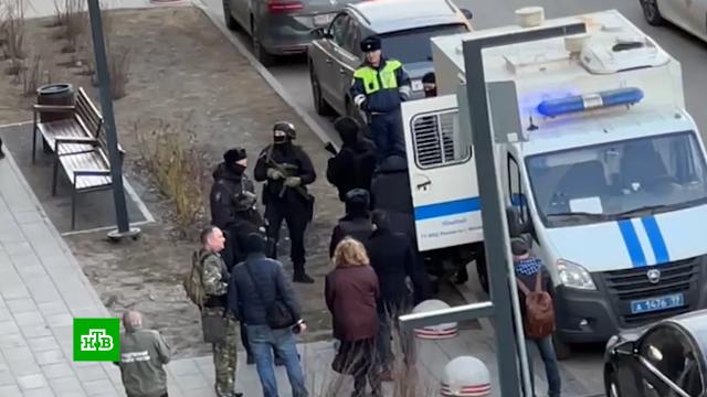 Исполнителей теракта доставили к «Крокус Сити Холлу» для проверки показаний на месте преступления.