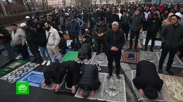 В Петербурге с восходом солнца тысячи мусульман собрались перед соборной мечетью на заутреннюю молитву в честь праздника Ураза-байрам .