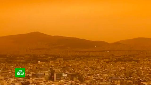 Небо над греческой столицей поменяло цвет с голубого на красный.