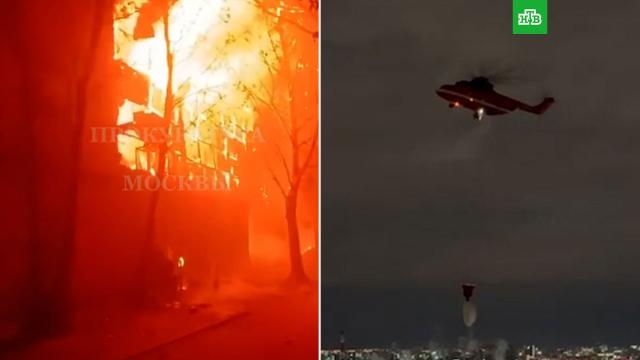 В пылающем трехэтажном здании на востоке Москвы обрушились конструкции на площади 1 000 квадратных метров.
