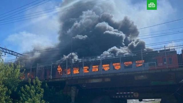 Сильный пожар охватил электричку в подмосковном Солнечногорске.