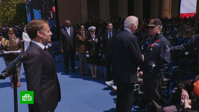В самом начале церемонии Байден сделал несколько попыток сесть на несуществующий стул. Стоящий рядом с ним президент Франции Эммануэль Макрон сделал вид, что не замечает происходящего. Некоторое время спустя, во время награждения участников исторической высадки в Нормандии, президент США решил в шутку ткнуть кулаком в лицо одного из ветеранов. Бывший солдат перенес это с ледяным спокойствием.