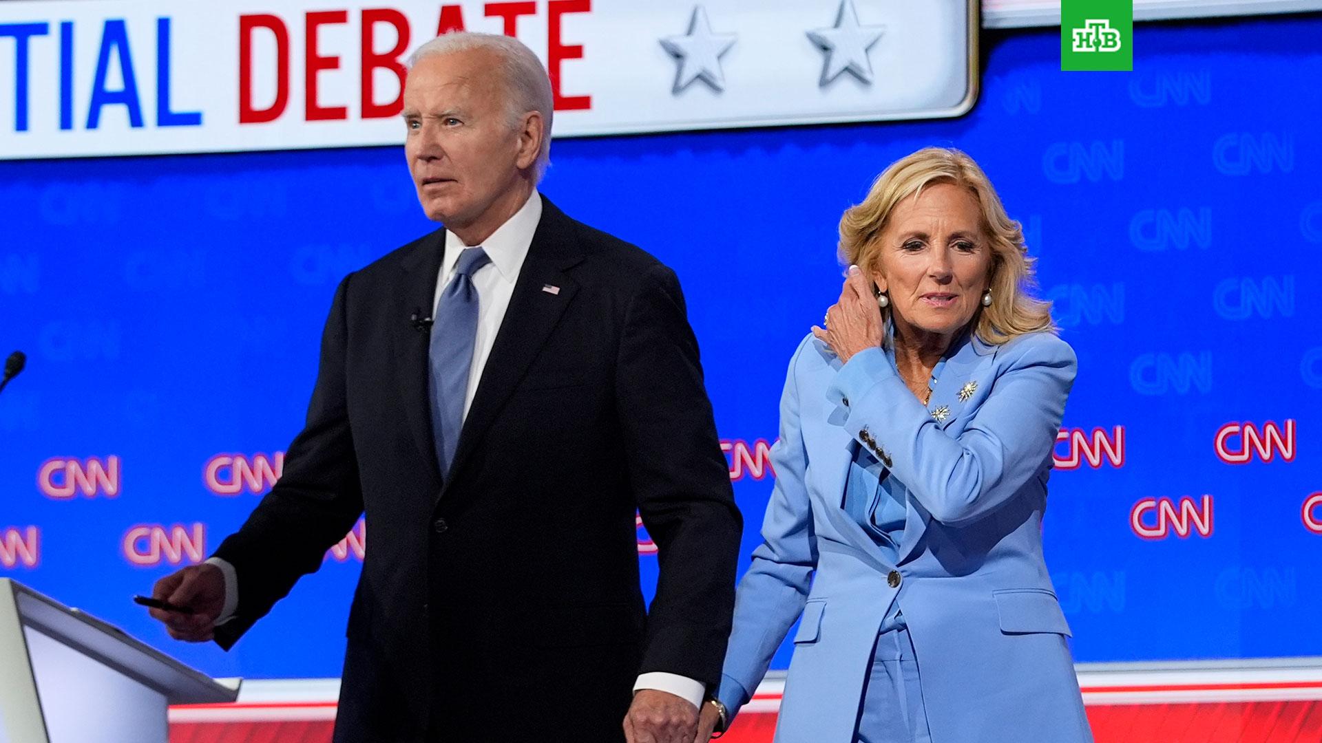 Президент США Джо Байден смог покинуть сцену после дебатов с Дональдом Трампом только благодаря помощи жены.
