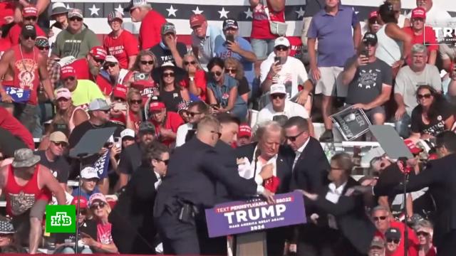 На распространенных в Сети кадрах видно, как Трамп хватается за правое ухо, смотрит на руку и тут же опускается на пол сцены, закрытой баннером. К нему бросаются агенты Секретной службы и накрывают. Публика тоже пригибается, кричит, при этом звучат новые выстрелы. Как потом стало ясно, это уже охрана Трампа нейтрализовывала стрелявшего.
