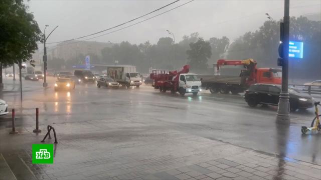 Обжигающая жара в Москве сменилась прохладой. Первые ливни прошли в столице ночью, следующая серия осадков ожидается сегодня после обеда. Синоптики предупредили, что за сегодня и завтра может выпасть до 75% месячного объема, усилится ветер, прогремят грозы. Температура пока еще будет превышать норму на