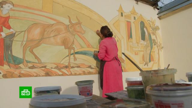 А художница Татьяна Флёнова внесла вклад в преображение Суздаля своей росписью — вариацией на тему истории города. Она превратила стену ничем не примечательной постройки в