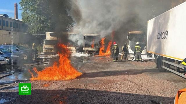 Три автобуса полностью сгорели во Фрунзенском районе.