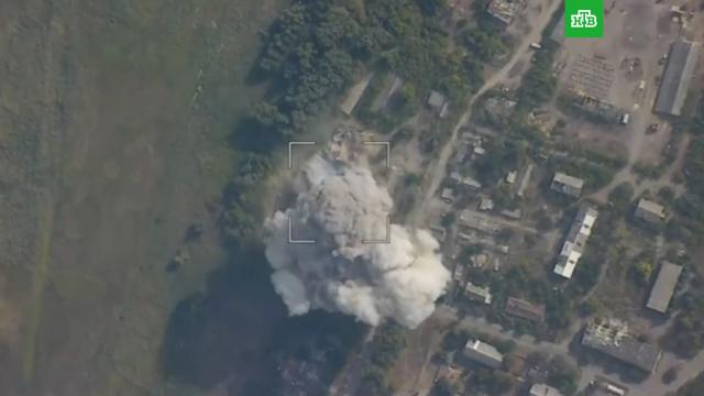 После точного попадания авиабомбы были уничтожены до 80 украинских националистов и восемь единиц техники. Кадры объективного контроля зафиксировали, как на место атаки прибыли автомобили эвакуации ВСУ.