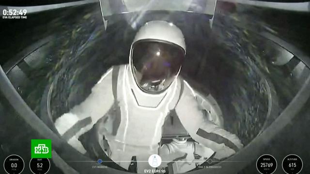 Первым в открытый космос вышел командир экспедиции Джаред Айзекман и провел там чуть более 10 минут. «Дома у нас всех много работы, но отсюда — мир кажется идеальным», — сказал он и уступил место Саре Джиллис, которая минут через 10 тоже вернулась в кабину корабля. Crew Dragon в это время находился на высоте 730 км над Землей.