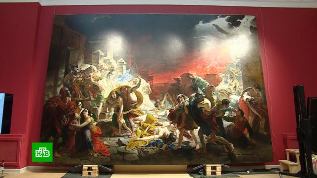 Карл Брюллов писал «Последний день Помпеи» в Италии шесть лет, будучи под впечатлением от посещения археологических раскопок древнего города, погребенного при извержении Везувия. Художника назовут Пушкиным в живописи, а картина станет визитной карточкой русского искусства. Сегодняшние реставрационные работы шли под чутким взглядом самого автора. Как известно, в одном из жителей Помпеи Карл Брюллов изобразил самого себя.