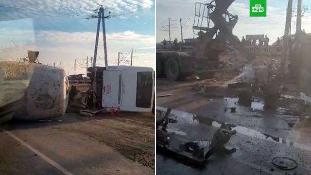 Три человека погибли и еще семеро пострадали при столкновении автобуса и бетономешалки в Астраханской области, сообщает МЧС.