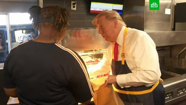 Дональд Трамп надел фирменный фартук и отправился прямиком к картофелю фри. Наполнив несколько порционных пакетов, он угостил посетителей заведения за свой счет. Кроме того, политик пообщался с местными жителями и журналистами.