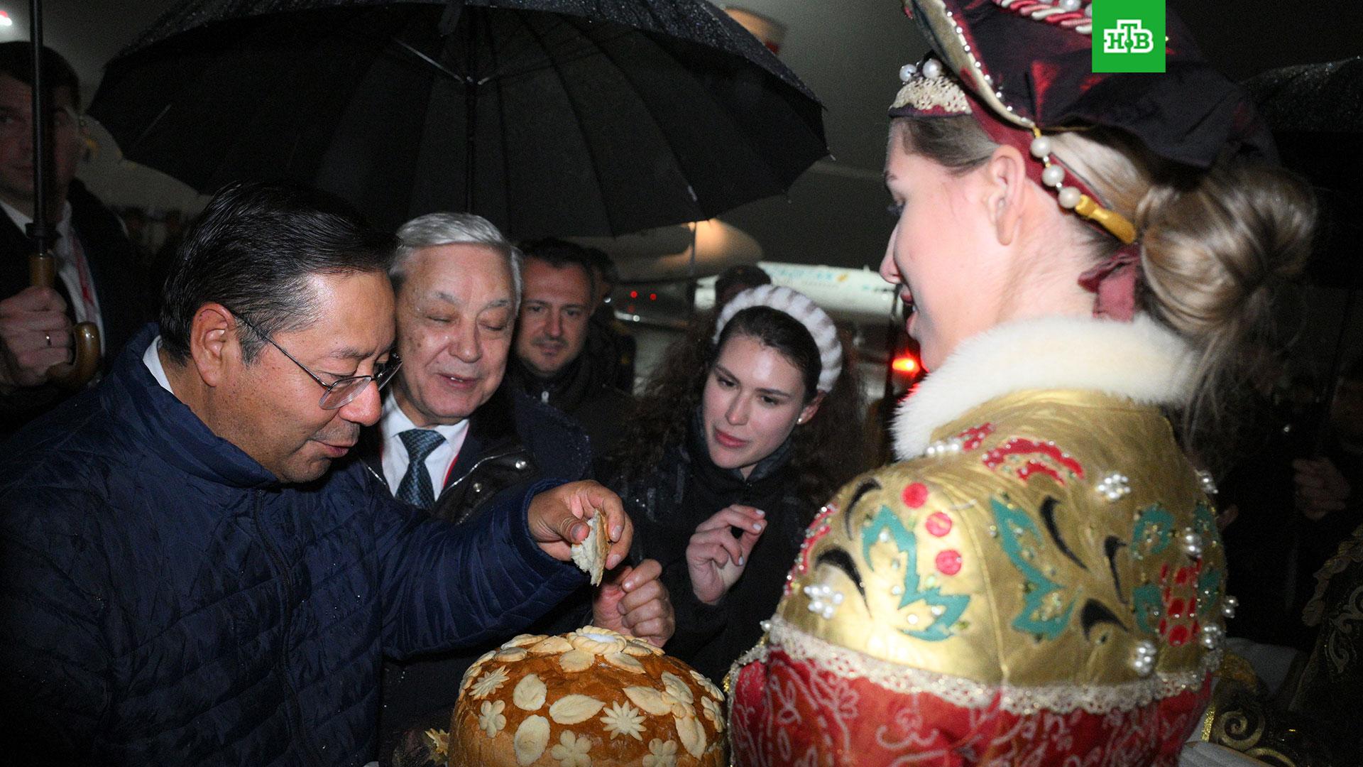 Боливийский лидер показал своим подписчикам, как его встречали с караваем в аэропорту Казани.